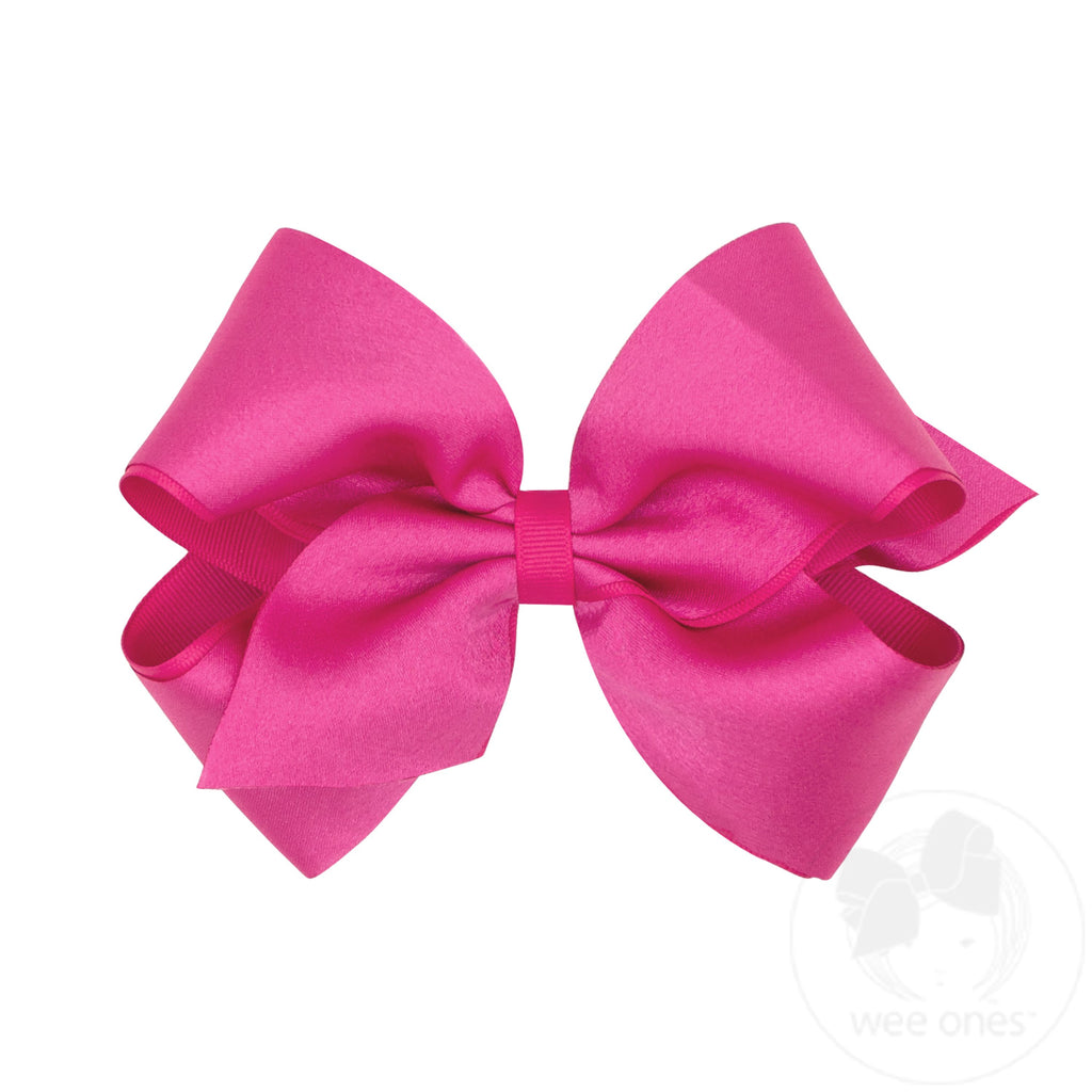 Crepe Satin with Grosgrain Underlay Hair Bow - Shocking Pink