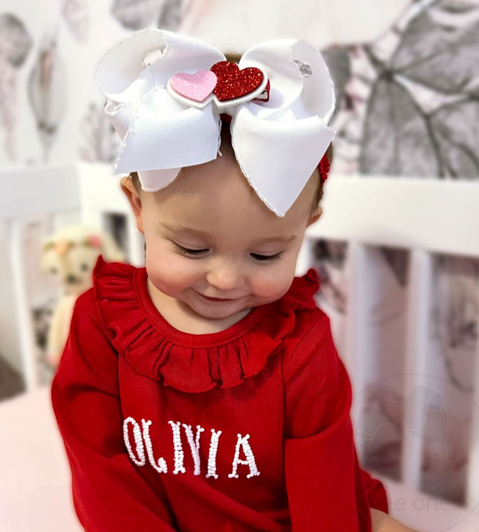 Grosgrain Hair Bow with Moonstitch and ABC's Embroidery