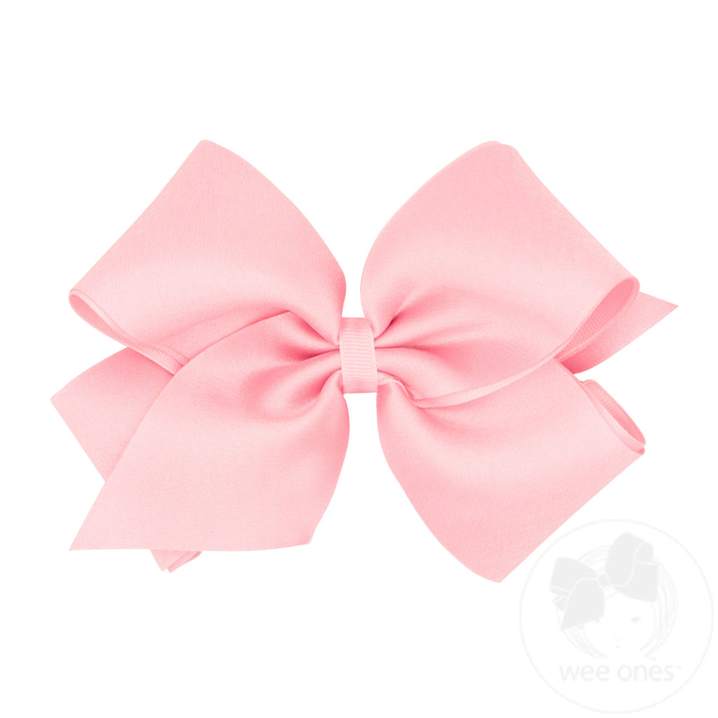 Crepe Satin with Grosgrain Underlay Hair Bow - Lt Pink