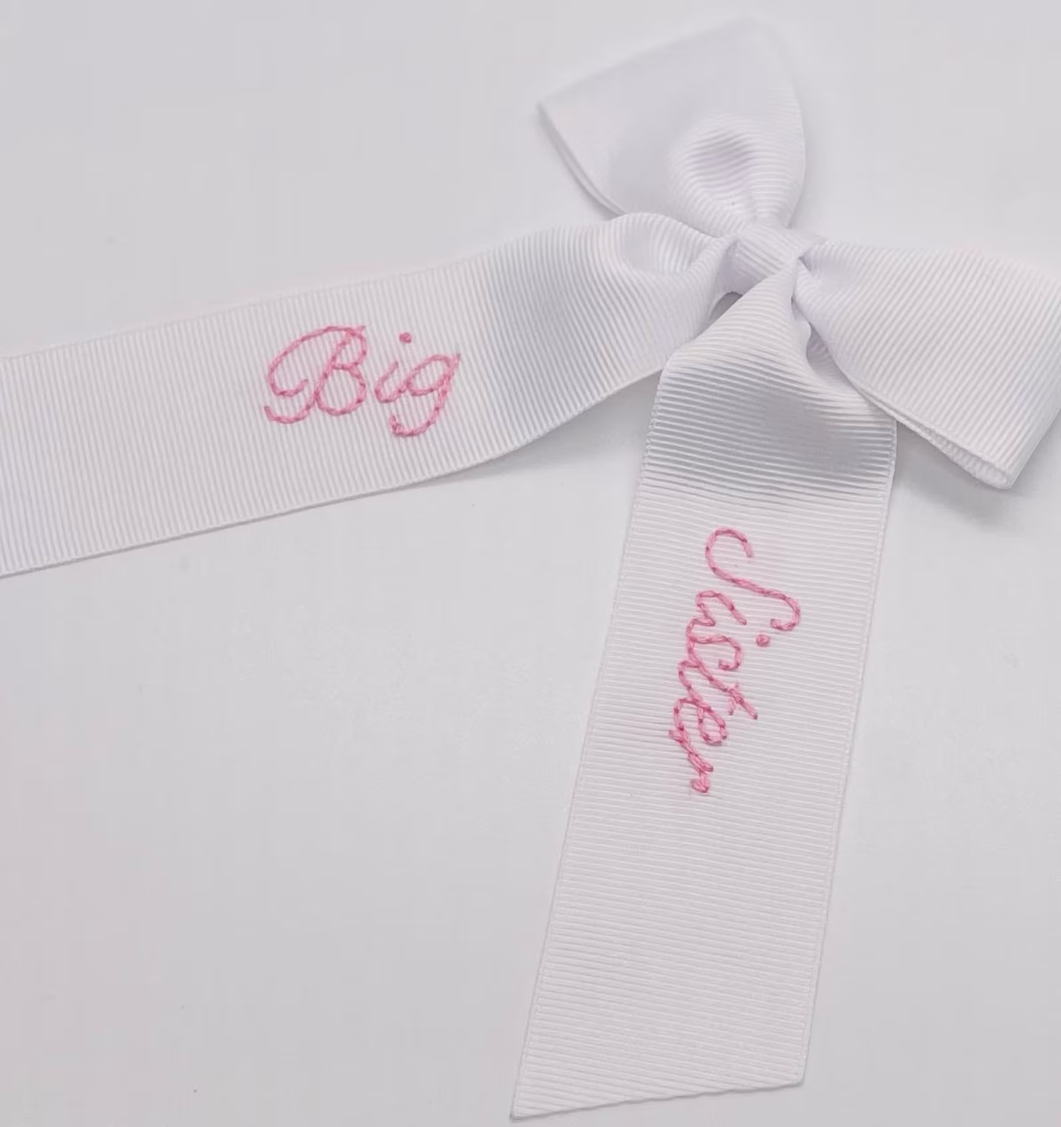 Big Sister Hand-Embroidered Bow, Pink Thread