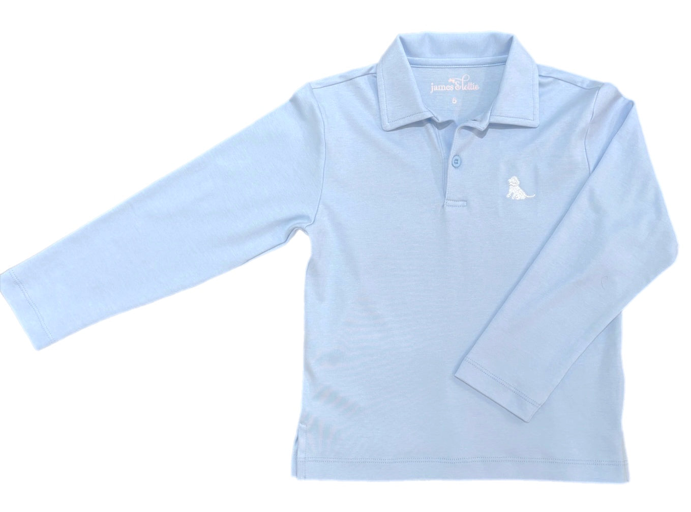 Patton Long Sleeve Polo, Light Blue with White Puppy