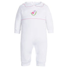 Made from 100% Pima Cotton with the sweetest hand-crocheted tulips, this little playsuit is a must have for baby girls. Layer on our Embroidered Cardigan - Tulips for an outfit for your little one will blossom in.