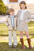 Meet James, a bright, happy floral in shades of blue, orange, and yellow! Our Sophie Skirt is a new style this season with on-trend quilting and a gold zipper in the back. This beautiful James Floral piece is the perfect match to our Sophie Jacket and pairs with our Solid Ribbed Turtleneck - Ivory for an elevated look.