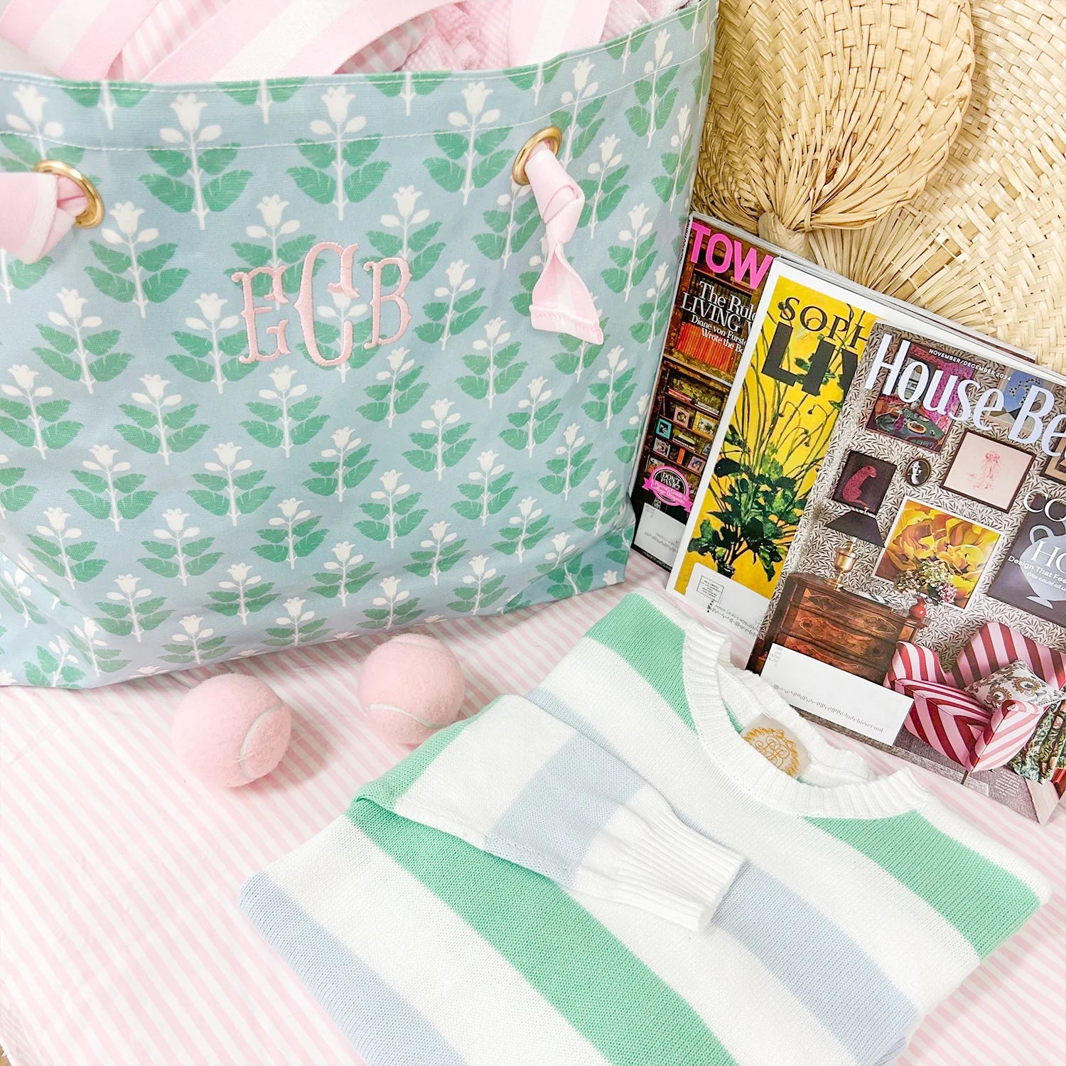 Isabelle Beach Bag - Hanover Hand Block with Palm Beach Pink