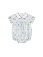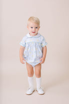 Our Lullaby Set classic Covington Bubble is now available in our custom Memorable Moments print in knit with Buffton Blue piping. This dreamy bubble creates a stylish look for your little one's playful adventures.