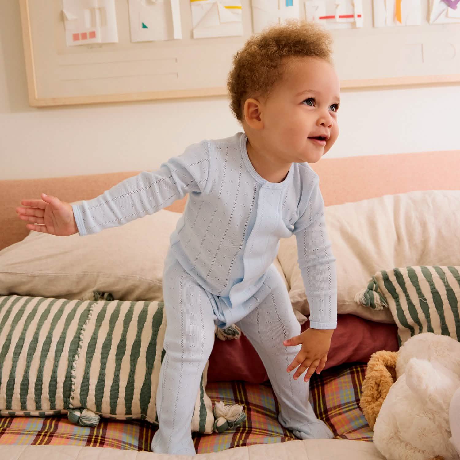 • Snug fit: sizes 9-12m and up follow snug-fit & flammability standards—consider sizing up.