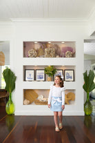 The Beasley Bow Skirt in Barrington Blue Check with Worth Avenue White is a preppy essential that brings classic charm to her everyday wardrobe. Featuring Barrington Blue Check with a white bow, this skirt is perfect for mixing and matching with her favorite tops.