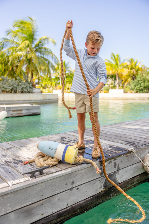 Our Hayword Half-Zip in classic Beale Street Blue Stripe with Beale Street Blue Stork is the perfect layering piece for the stylish young gentleman. This versatile boys' pullover features timeless stripes and a convenient half-zip design that's ideal for school days, weekend outings, or any occasion that calls for preppy style. Crafted for lasting comfort and easy movement, it's an everyday essential that coordinates perfectly with our collection.