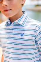 Prim and Proper Polo - Blue Stripe with Wood Boat Blue Stork