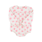 Our Long Sleeve Penny's Playsuit is practical + cute! Featuring Vintage Prep Pumpkin Pails with Sandpearl Pink, this is sure to be a staple piece in her wardrobe. She'll love how comfortable this piece is, and you'll love how adorable she looks wearing it!