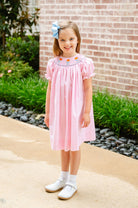 Welcome fall in the most charming way with our Smocked Pumpkins Pink Gingham Dress. Featuring hand-smocked pumpkins atop a classic ginger jar, this design blends seasonal sweetness with timeless Southern style. The soft pink gingham adds a playful, polished touch — perfect for back-to-school, fall events, and family photos.