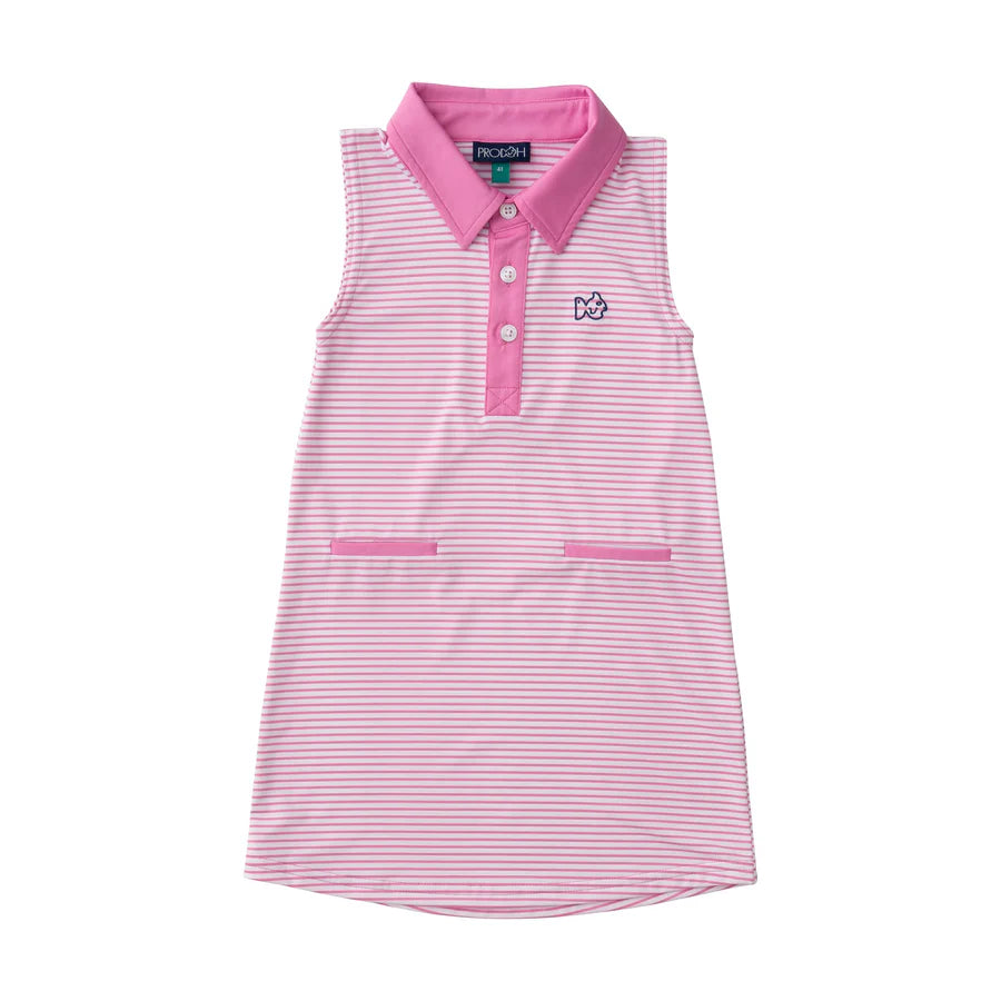 Sleeveless Pro Performance Polo Dress - Fuchsia Pink Stripe