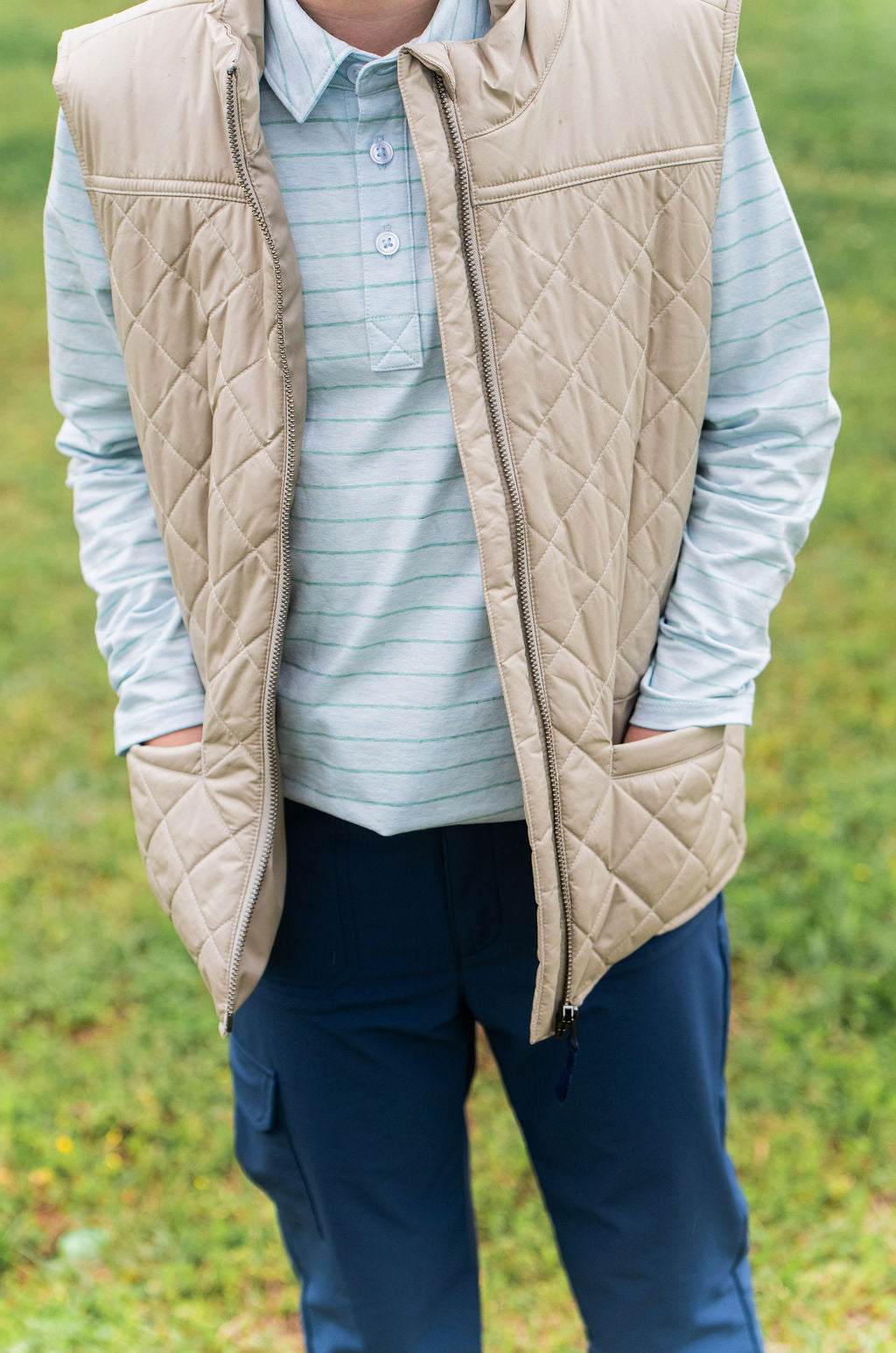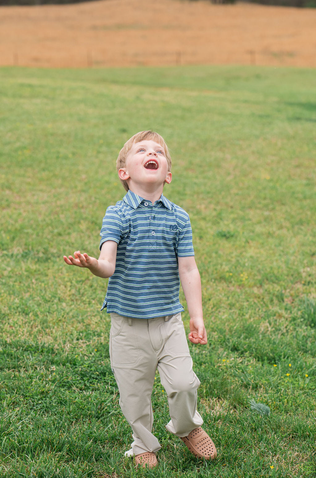 Boys LS Too Cool for School Cotton Polo - Ice Water Blue Surf Stripe
