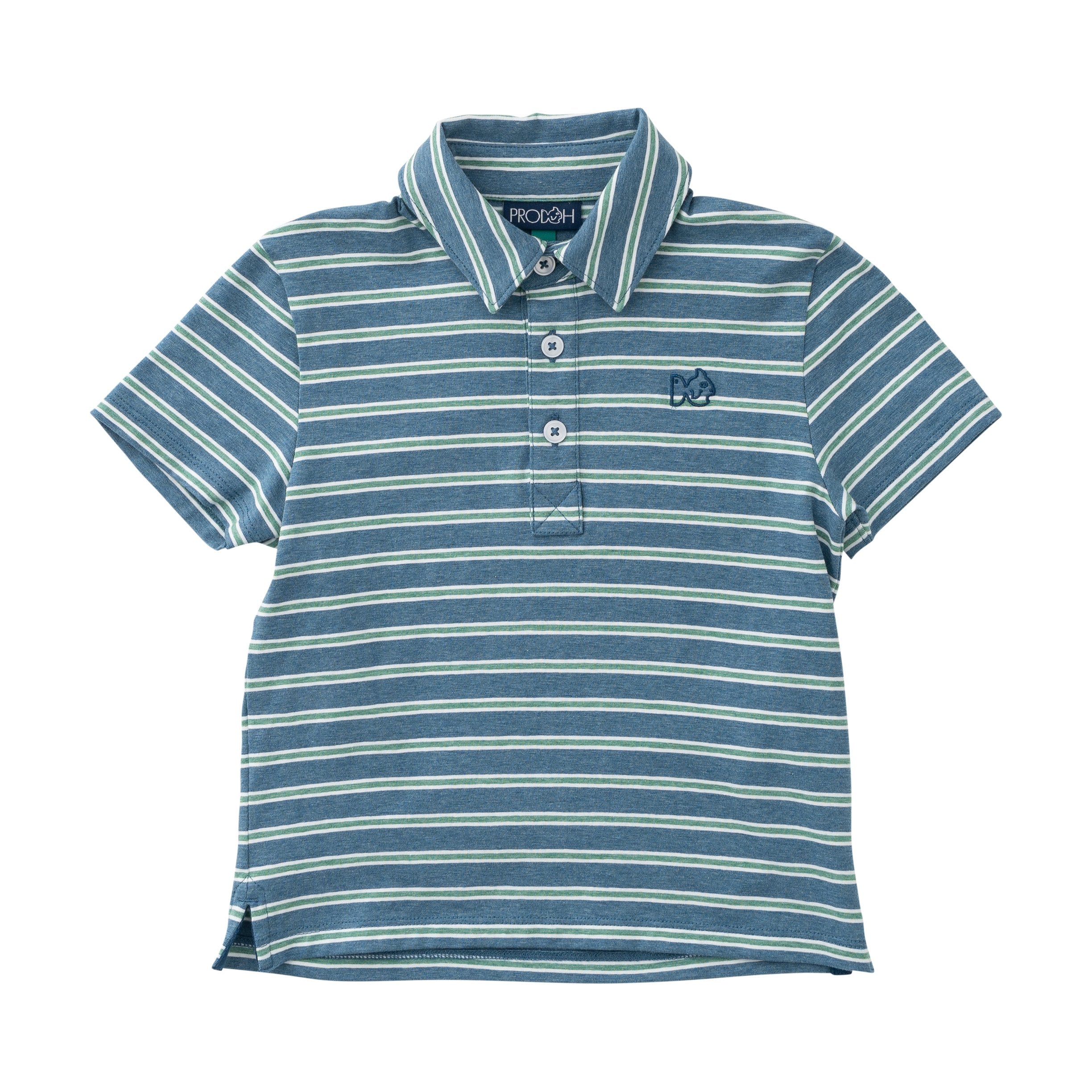 Boys SS Too Cool for School Cotton Polo - Copen Blue/ Frosty Spruce Stripe