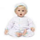 Designed to look and feel like a real baby, Little Sweetheart has a light skin tone, blonde hair and blue eyes. Our Newborn Nursery dolls are 19” and feel so real, thanks to a soft, weighted fabric body, molded head and limbs, and wispy hair. They feature beautiful classic Lee Middleton sculpts. The mouth is slightly open and is designed to suck a thumb or pacifier. Encouraging nurturing play, this is the perfect baby doll for your child to pretend being a little parent! Ages 3+