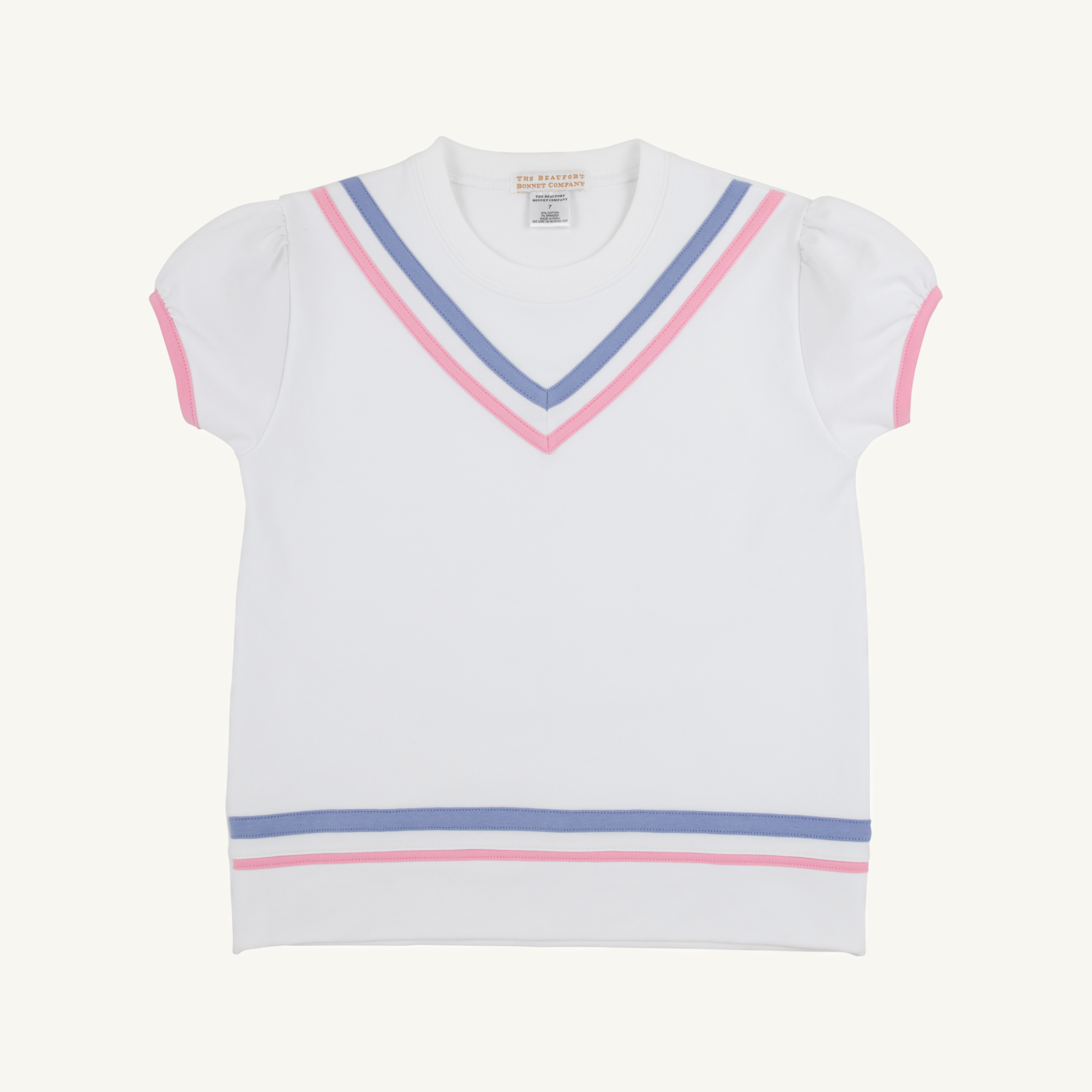 Cassidy Comfy Crewneck Short Puff Sleeve - Worth Ave White with Park City Periwinkle and Hamptons Hot Pink