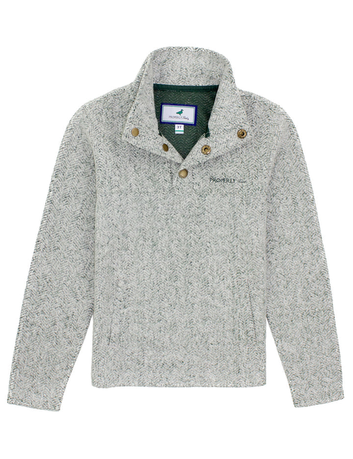 The Upland Pullover is a Properly Tied classic. Built with a soft blend of polyester and rayon, this midweight pullover features a quarter-snap placket with brass buttons and a stand-up collar. Practical front pockets and a cozy fit make it an easy go-to for cool days outdoors. Dress it up with a Seasonal Sportshirt underneath, or check out the Upland Vest for the same classic style with a sleeveless fit.