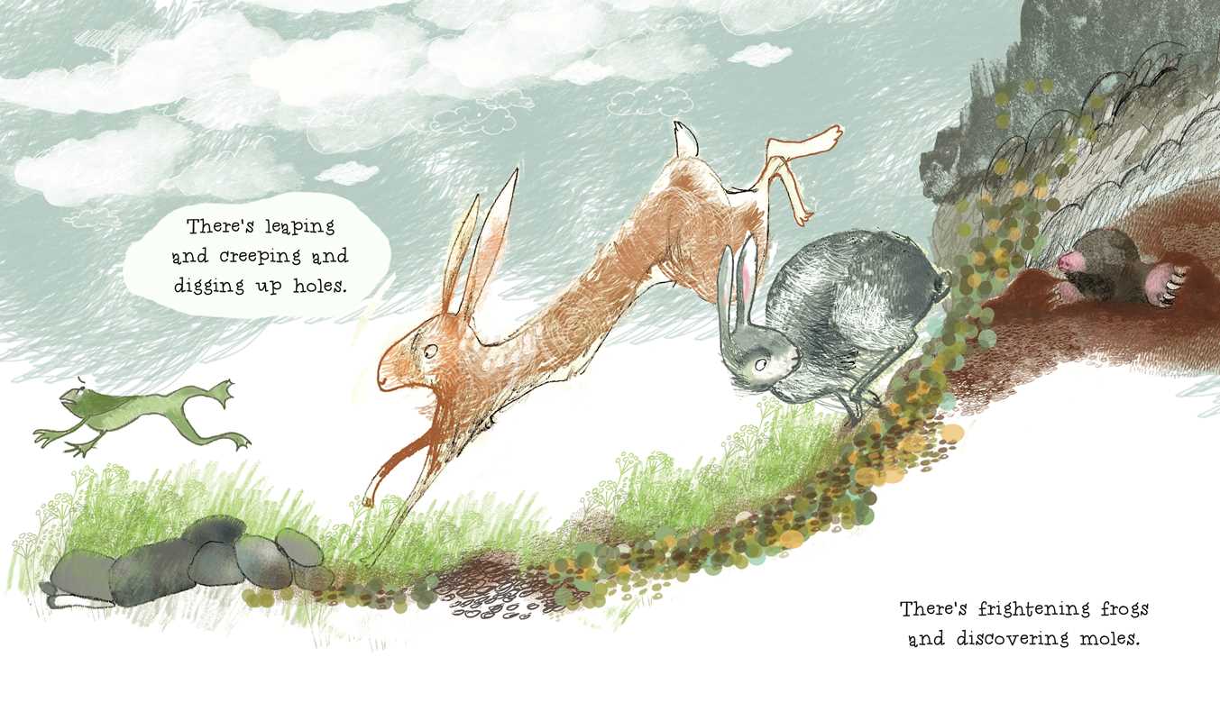 This lyrical story now follows a family of rabbits throughout the seasons as they have fun doing everyday things like digging holes, building snow rabbits, thumping their feet, and more.