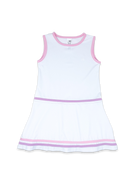 Our Jordan Dress is sure to be a country club favorite! This sleevless dress in Pure Coconut athleisure with Cotton Candy Pink and Petal Purple welting is sure to be must-have!