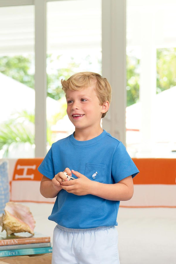 Carter Crewneck - Wood Boat Blue with Multicolor Stork