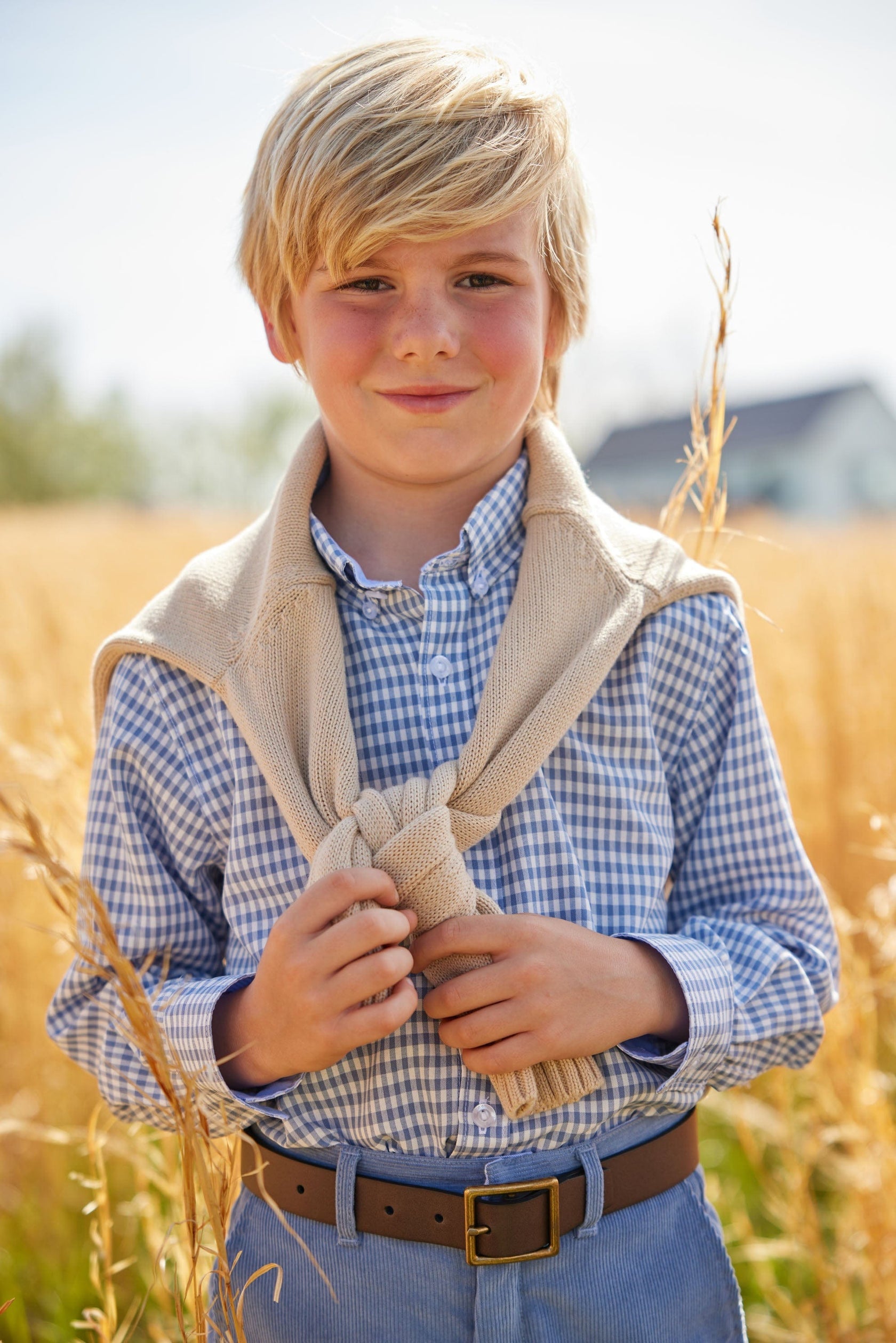Delta Valley Vest: Wheat with Mallard Blue Trim