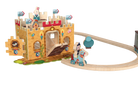 Embark on a royal adventure at Bababoo’s Castle, where little knights and princesses can create their own fairy-tale stories! Join Bababoo and friends as they explore secret passages, outsmart mischievous trolls, and even encounter a dragon during a horseback ride. With train tracks that extend beyond the castle walls, kids can take their adventures anywhere. This 45-piece set inspires creativity and helps develop motor skills—whether raising the working drawbridge or proudly placing the flags. Featuring beautifully illustrated wooden pieces, the set provides endless opportunities for imaginative play. It is thoughtfully designed to enhance concentration, hand-eye coordination, and spatial awareness while sparking your little explorer’s creativity. - For kids aged 2+ years
