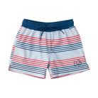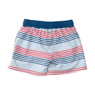 Our Boys Boogie Board Swim trunks in American Stripe Print are made of soft, itch free fabric that boys and toddlers crave! Updated side slits and 4 way stretch fabric will provide more movement for your little guy this season! PRODOH Swim trunks are lightweight and fast drying and feature an anti chafing boxer brief liner.Side seam pockets are mesh lined so sand stays out but shells and bait stay put. Pair with a PRODOH sun protective Reef Rash Guard Swim Shirt from our boy's swimwear line or a lightweight youth performance t-shirt. Swim Trunks are available in custom designed fabric prints in sizes 12 Month - Youth Large 12/14 for toddlers and boys.