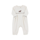 Our Long Sleeve Bradford Romper featuring Palmetto Pearl with Gray Bay Brown & Horse Embroiidery is too good to be true! We love how soft this romper feels, how easy it is to play in, and how detailed the embroidery is. Every inch is perfection!