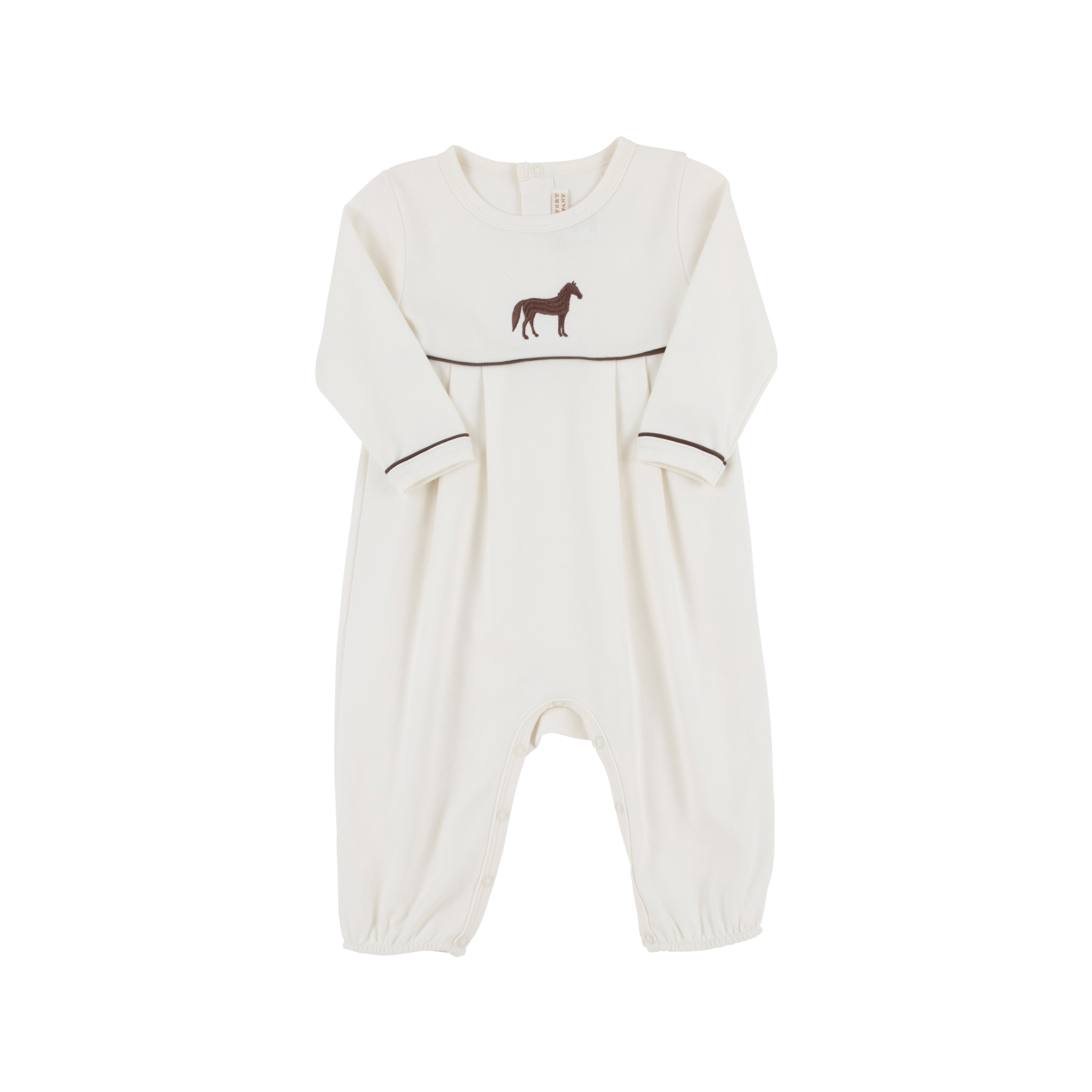 Long Sleeve Bradford Romper - Palmetto Pearl with Gray Bay Brown and Horse