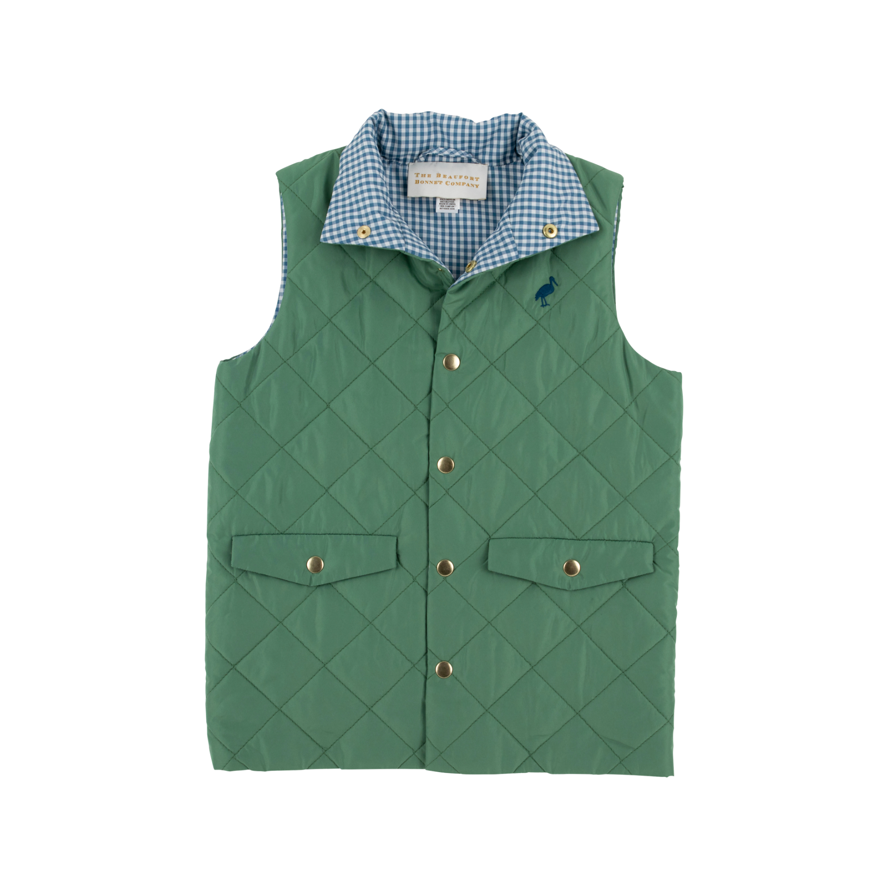 Vaughn Vest - Gallatin Green with Barnsley Blue Mini Gingham and Barnsley Blue Stork