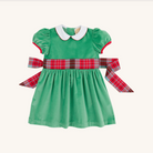 Cindy Lou Sash Dress (Velveteen) - Kiawah Kelly Green with Wilson Pier Plaid
