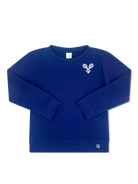 Our new Alex Sweatshirt is perfect for cooler days. This soft and cozy sweatshirt in Liberty Navy with Tennis embroidered in Pure Coconut brings cute and comfy to a whole new level. Pair with our bottoms to complete the look