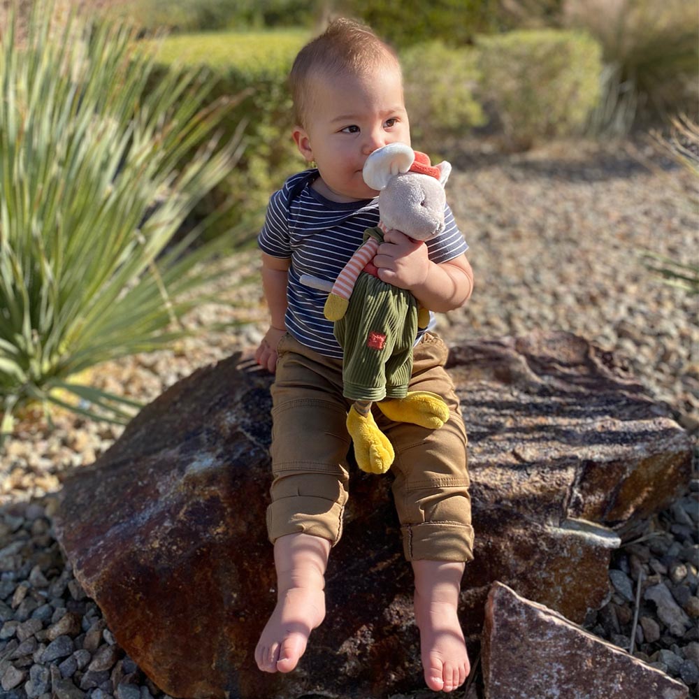 Henry is a wonderfully cute mouse that won't scare any of your family members. He is made out of a durable plush that is incredibly soft to the touch and an adorable gift for a person of any age. As you can see, Henry loves to coordinate his hats with his outfits! His classic striped shirt and contrasting earthy green pants with orange patches make him easy to find if lost.