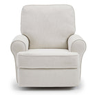 Style extends from the straight lines of the square back to the rounded, extra cushioned arms that supports your body while nursing or gliding your baby to sleep. Comfort is not sacrificed by style. With a hidden inside handle, this swivel glider reclines to a full layout position. It is also available with as a Power Swivel Glider Recliner, which means you can experience the whisper smooth reclining motion at the push of a stylish button that also features a built in USB charger.