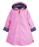 Don't let rain spoil the perfect outfit. The A-Line Raincoat by American Widgeon features a fit-and-flare style that complements any look, rain or shine. With a hood, zipper closure, and a hanging hook for both classroom and home, it's designed for convenience and style. The raincoat boasts soft fabrics, a smart design, and an adorable polka-dot lining, making it a win for your aspiring fashionista. Plus, it's made from machine-washable, easy-care fabric, perfect for handling the messiest puddle-stomping adventures.